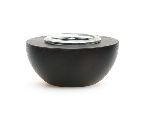 Bougeoir Galéo en frêne massif coloris ébène et verrerie termoformée