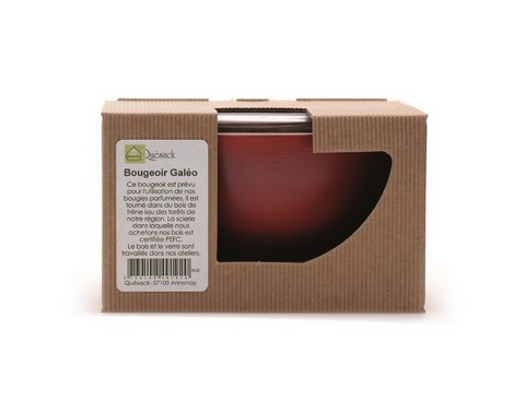 Bougeoir Galéo en frêne massif coloris rouge et verrerie termoformée