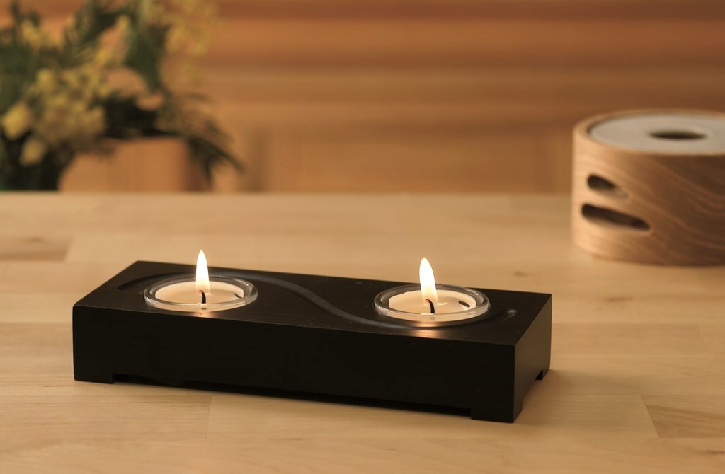 Bougeoir Ménès En frêne massif coloris ébène avec 12 bougies végétales
