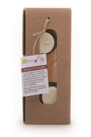 Bougeoir Ménès En frêne massif coloris naturel avec 12 bougies végétales