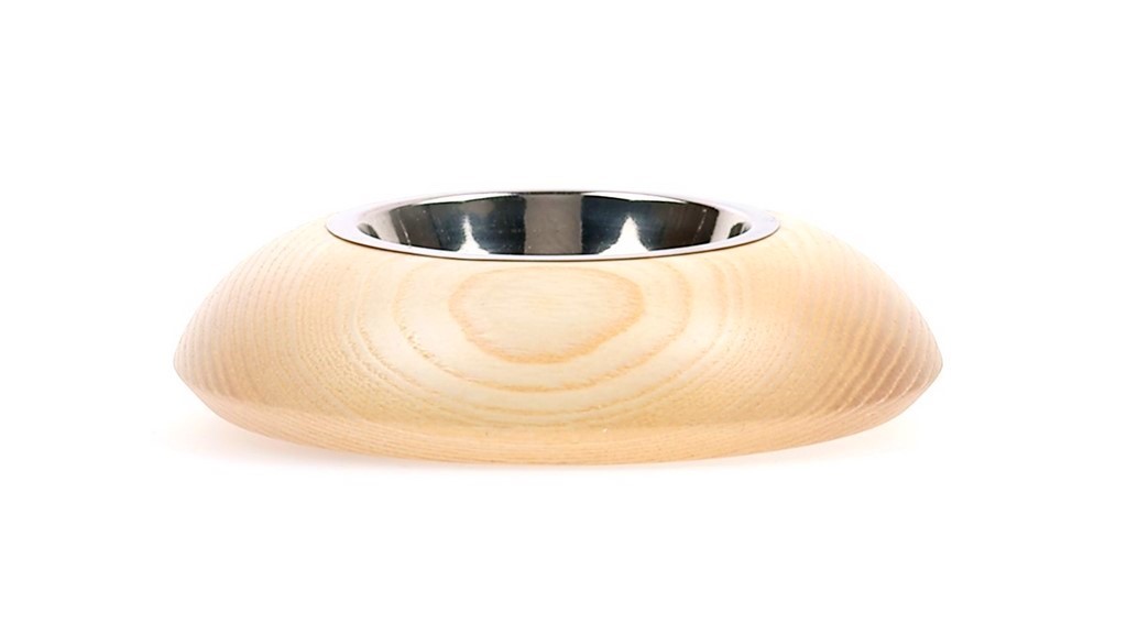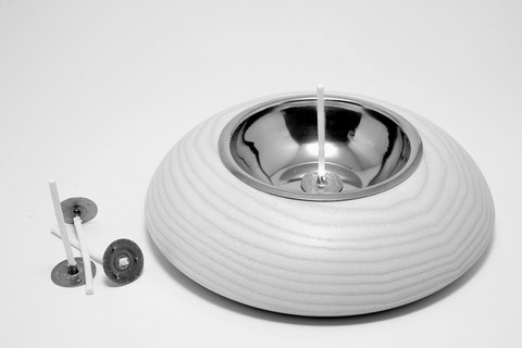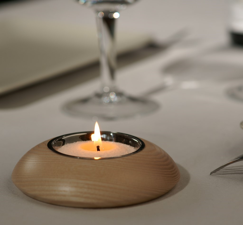 - 1 bougeoir en bois de frêne avec une coupelle en inox.