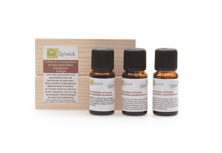 Coffret Energie avec trois compositions d'huiles essentielles biologiques