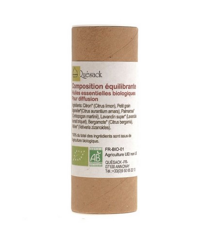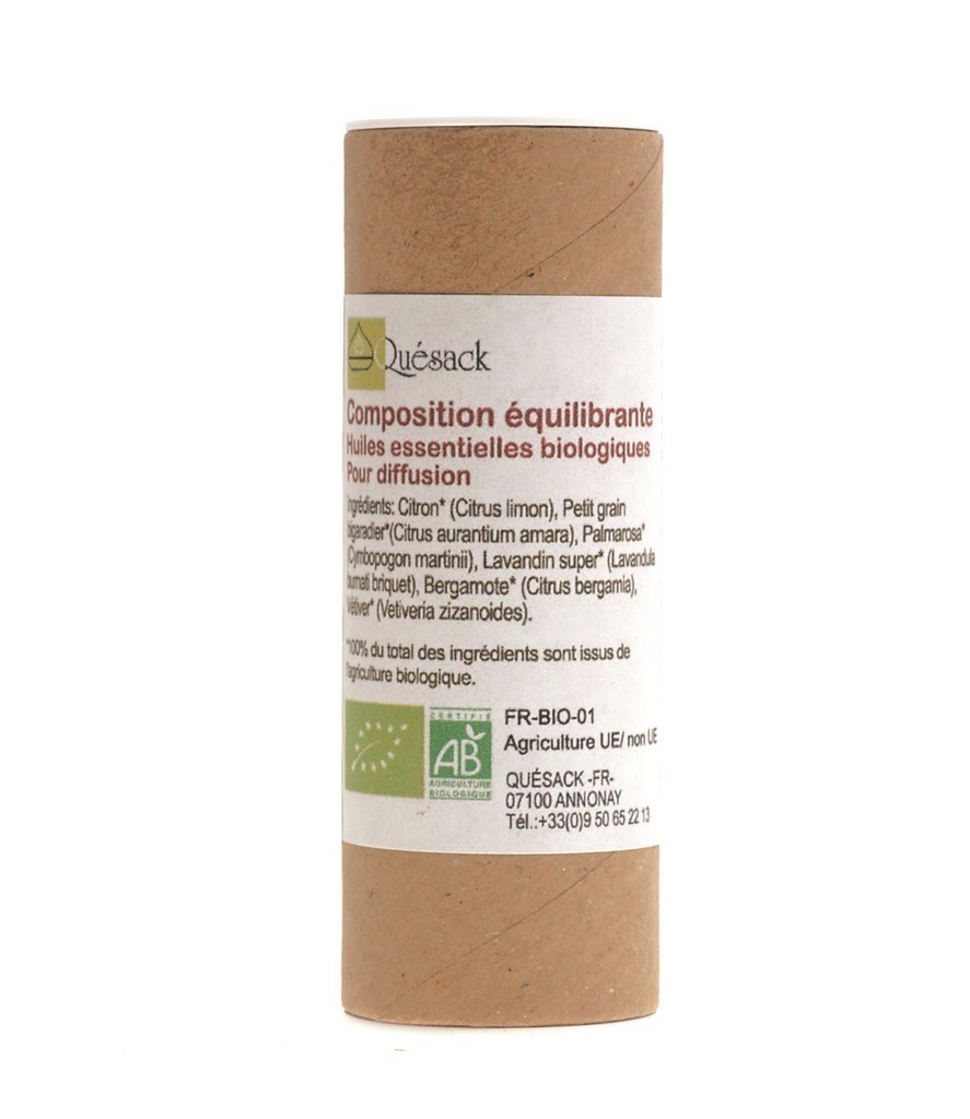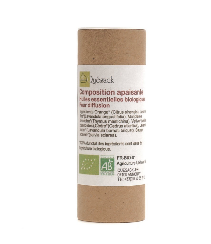 Ingrédients: Orange douce*(Citrus sinensis), Lavandin super* (Lavandula burnati briquet), Bergamote* (Citrus