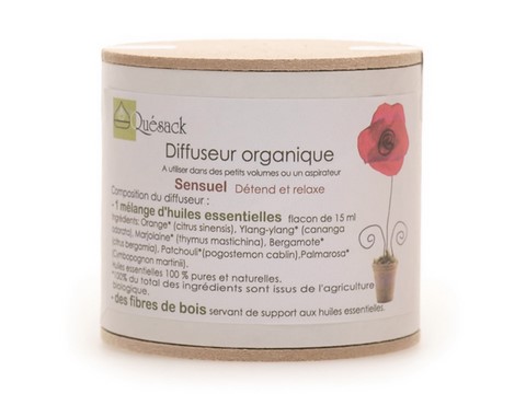 - Ingrédients : Orange* (Citrus sinensis), Ylang-Ylang* (Cananga odorata), Marjolaine* (Thymus mastichina), Bergamote* (Citrus bergamia), Patchouli* (Pogostemon cablin), Palmarosa* (Cymbopognon martinii).