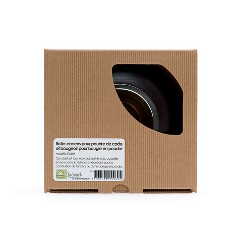 Brûle-encens pour poudre de cade en forme de galet il est fabriqué en bois de frêne teinté acajou foncé.Sa coupelle en inox assure la résistance nécessaire à la chaleur.