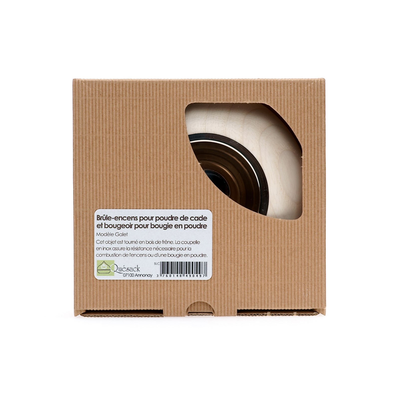 Brûle-encens pour poudre de cade en forme de galet il est fabriqué en bois de frêne coloris bois blanchi.